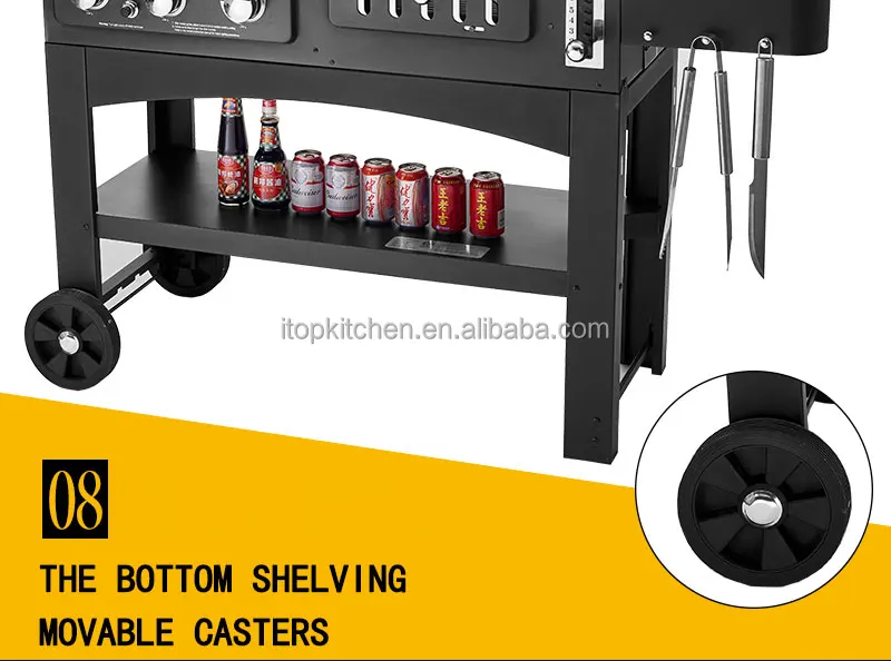 Large double baking zone, the left air baking zone, the right region of charcoal.