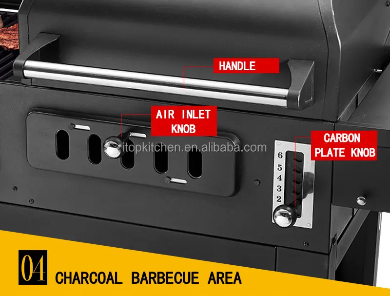 Adjustable charcoal tray, 6 levels grill temperature can be adjusted.