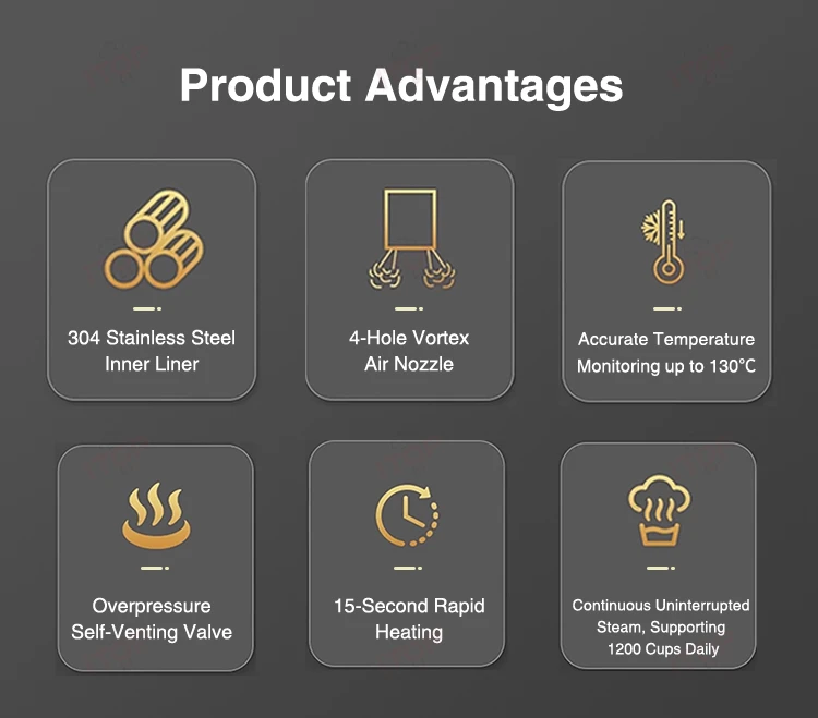 8.Four Major Safety Protections:Dry-Burning Protection,Overheating Protection,Anti-Scald Protection,Anti-Steam Protection.