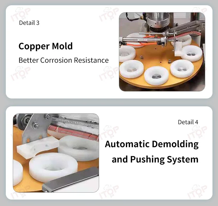 2) The copper molds are more corrosion-resistant and have an automatic demolding and pushing system.