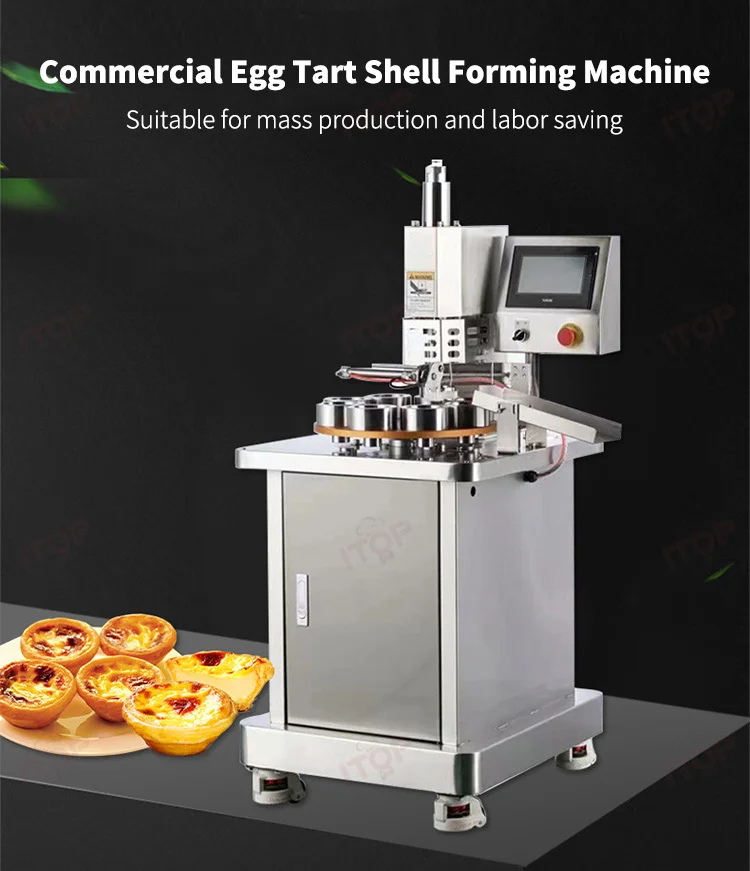 This egg tart machine is suitable for shaping the egg tart crust. The professional pneumatic design ensures the standard shape of the egg tart crust, with high efficiency. It can be used with different molds to produce egg tart crusts of various sizes and shapes. Small egg tart machine, egg tart maker, egg tart processing machine, egg tart machine, automatic egg tart maker, high-quality automatic egg tart processing machine.