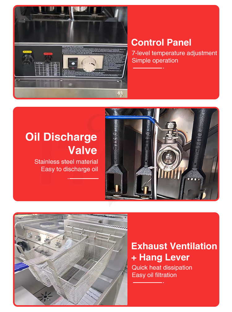 • Ce 2 Tanks 3+3 Burners Stainless Steel Gas Deep Fryer 28l*2 Commercial Potato Chips Frying Machine With Oil Discharge Device