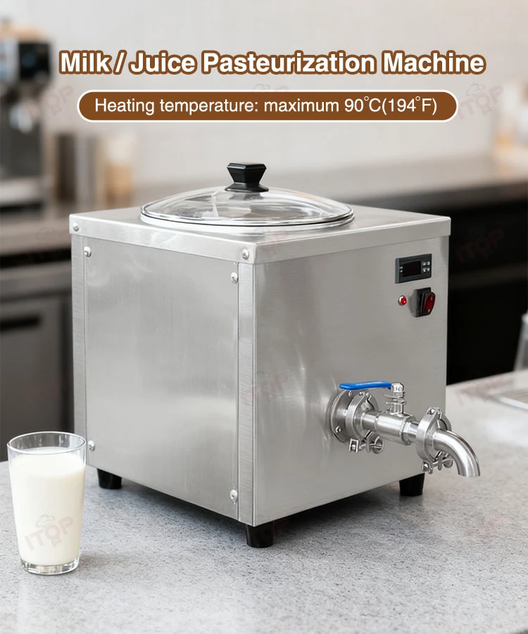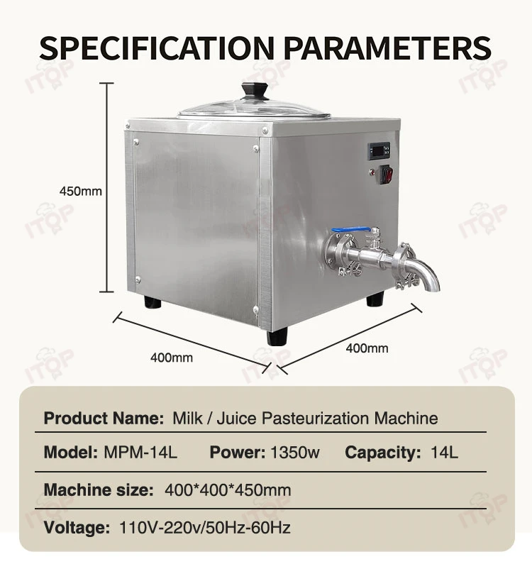 1.Temperature---High-precision vat temperapreparation, pasteurization, storage, ageingture control through a dip probe. The bain-marie mix treatment allows to set the Toup to 85°C(153°F) maintaining the organic characteristics of the products.Possibility to check the timing from the beginningof the preservation at 4°C(39°F).