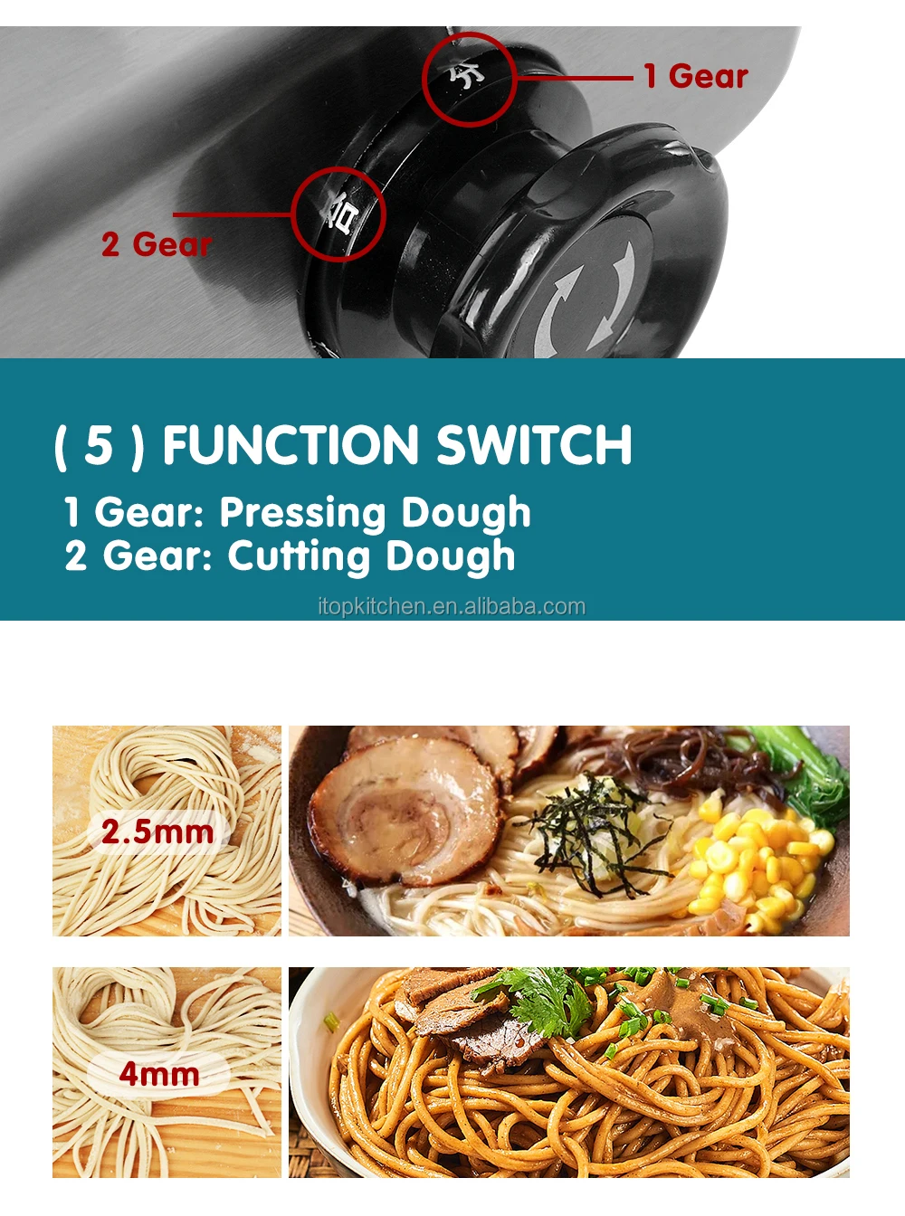 5. Function Switch--1 Gear: Pressing Dough, 2 Gear: Cutting Dough
