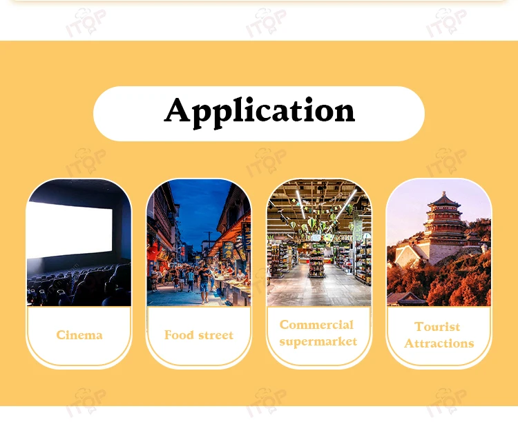 (8)With cabinet, store corn and candy, butterProducts used in:Products are widely used in large cinemas, shopping centers, large
