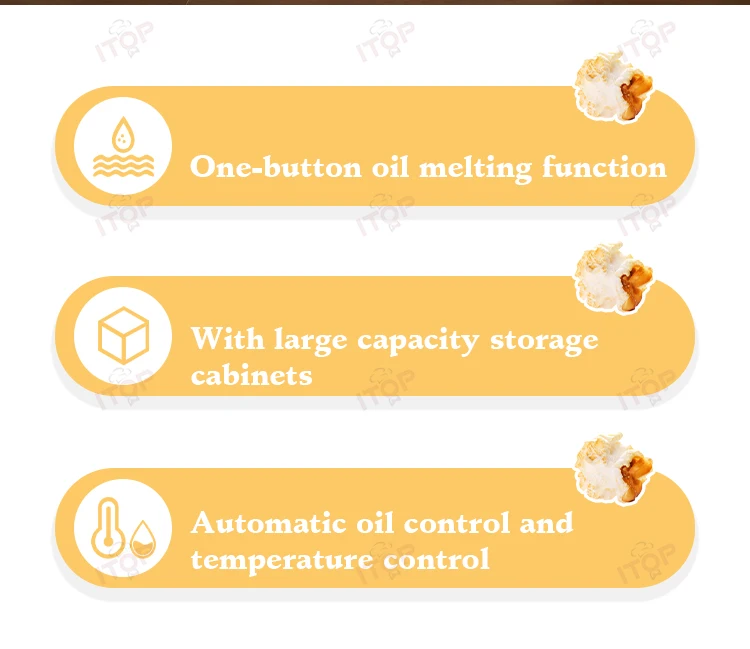 (5)Three-dimensional design of the machine, with its own insulation, lighting, function, to ensure that the popcorn crisp and