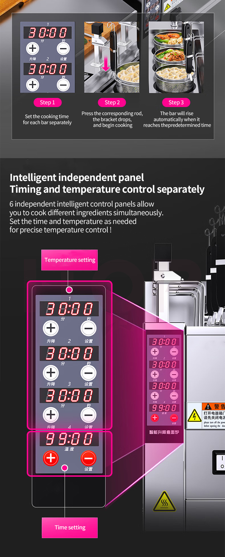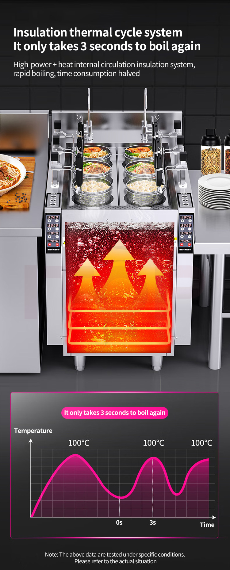 Constant temperature and heat preservation function (to keep the water temperature at a high level and improve the cooking efficiency).