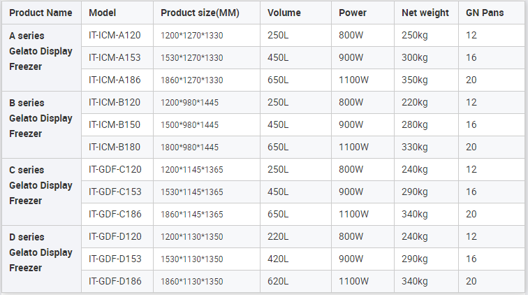*Temperature range: -18~-22℃