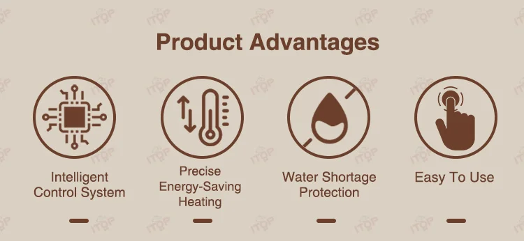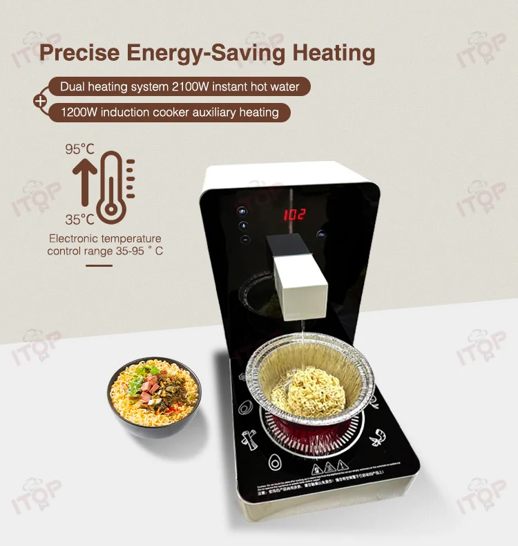 Feature 1.Precise Energy-Saving Heating Dual heating system 2100W instant hot water + 1200W induction cooker auxiliary heating Electronic temperature control range 35-95°C 2.Intelligent Control System,Customizable Workflows Menu parameters can be set individually Built-in emergency water replenishment function 3.Intelligent Control System Microcomputer intelligent sensing technology One-touch automatic process menu key 4.Space-Efficient Engineering Compact size, reducing space requirements