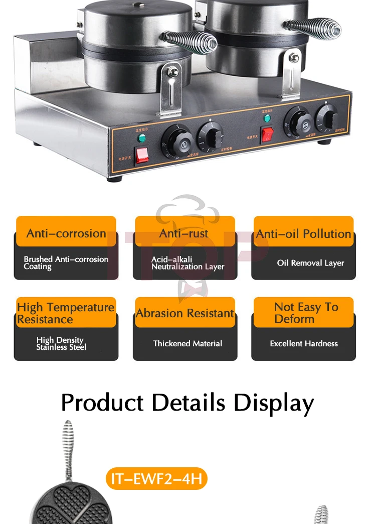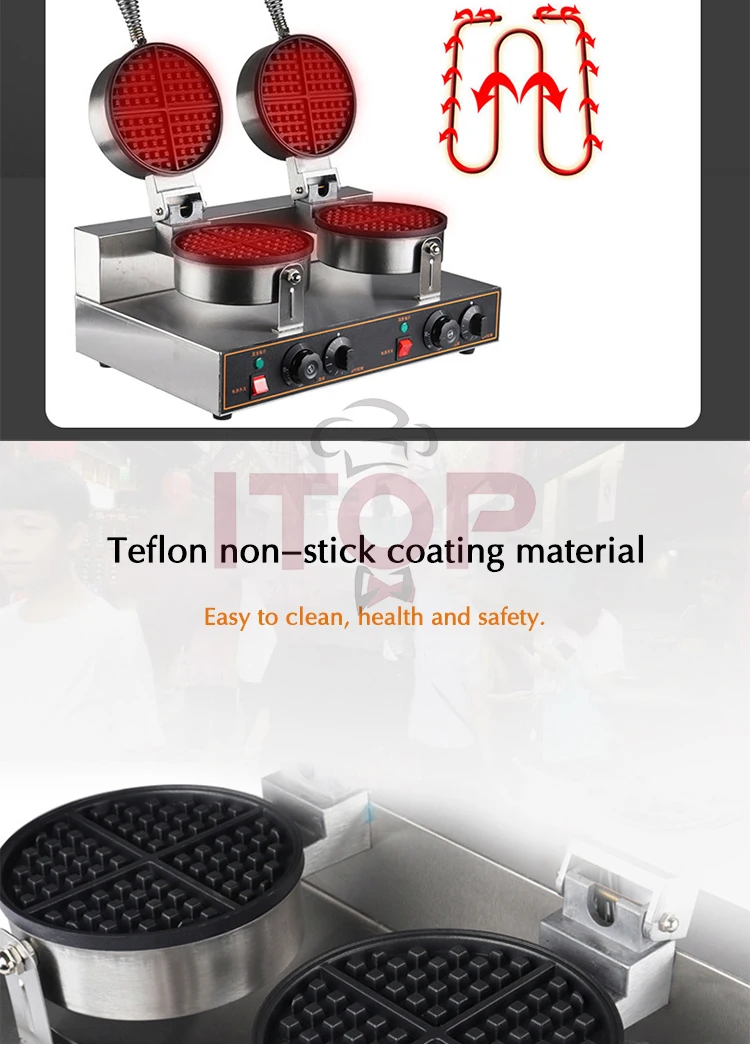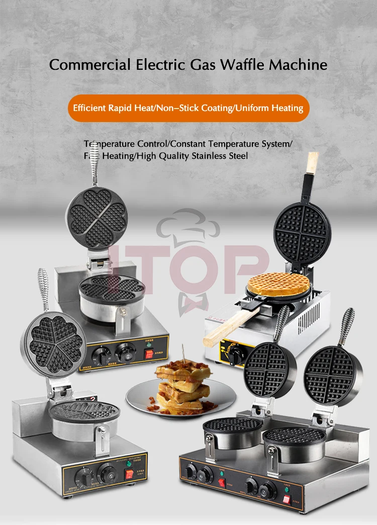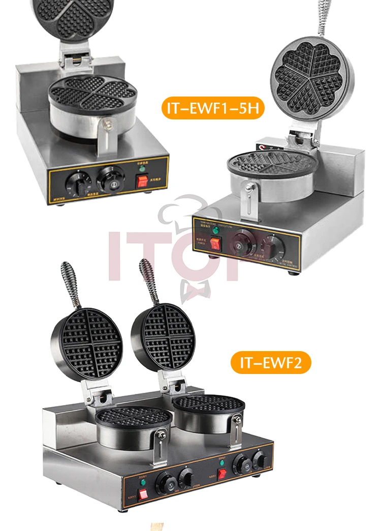 • Double Heads Heart Waffle Baker Commercial Waffle Maker Professional Rotary Egg Wafer Making Machine