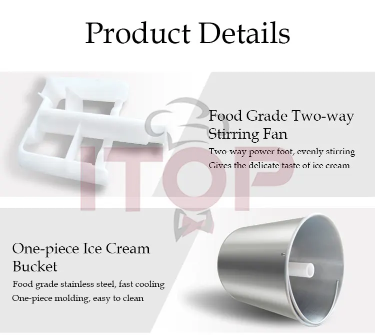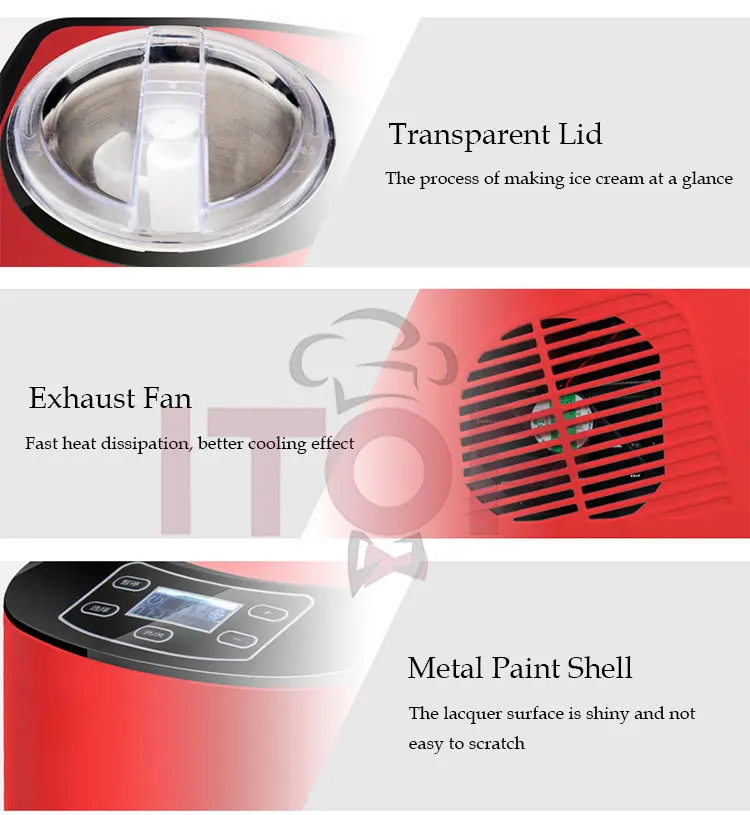 Other | 1.Automatic insulation without adjustment. 2.Air cooling. 3.Soft, medium and hard ice cream. 4.Removable and easy to clean. |