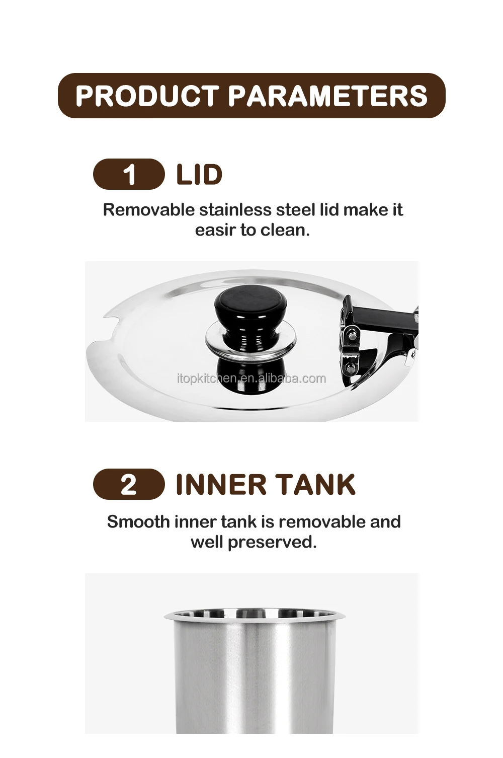 1. Add 0.6L of water between the stainless steel pot and internal Aluminum container