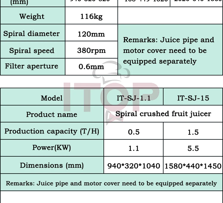 | Weight | Remarks: Juice pipe and motor cover need to be equipped separately | |||
