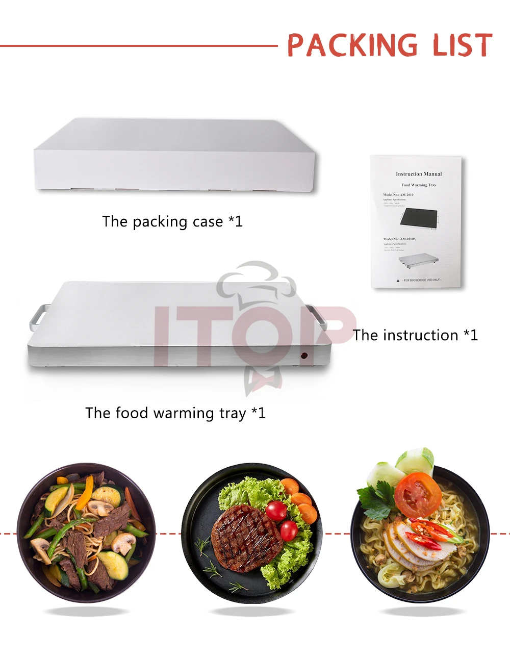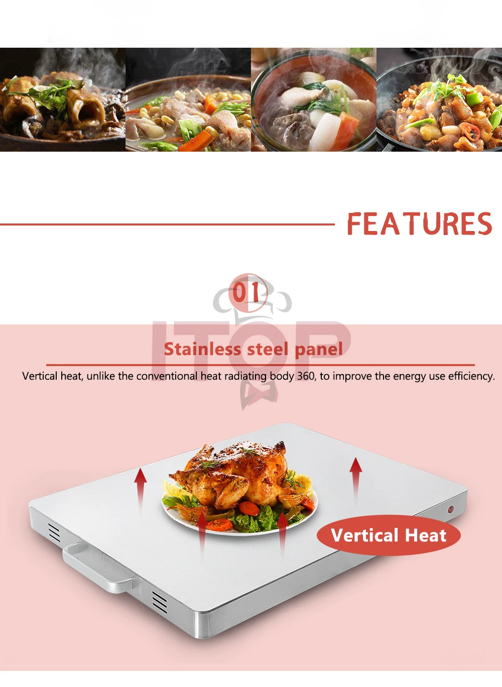 Electric 400W Food Heating Plate Warming Tray Stainless Steel Surface Commercial Buffet Food Warm Plate Machine 220V CE