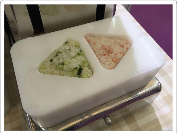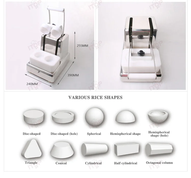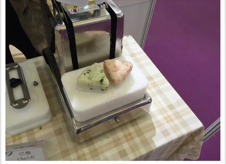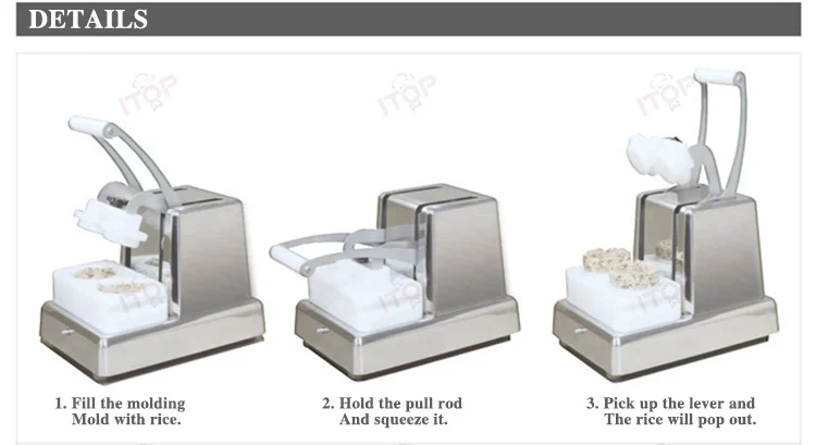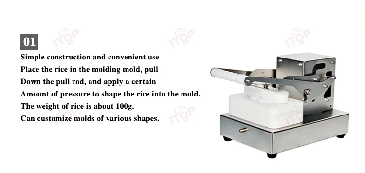 Place the rice in the molding mold, pull down the pull rod, and apply a certain amount of pressure to shape the rice into the mold.