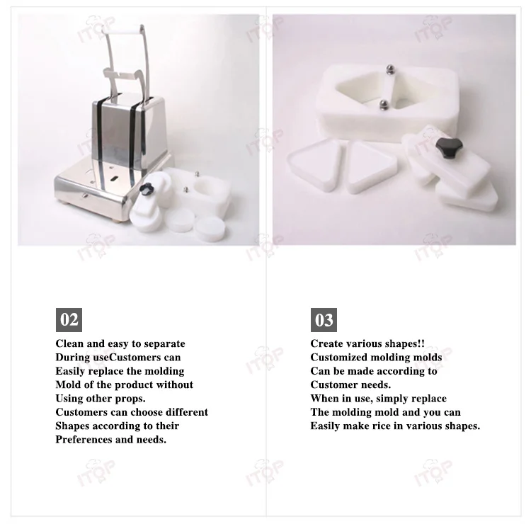 When in use, simply replace the molding mold and you can easily make rice in various shapes.