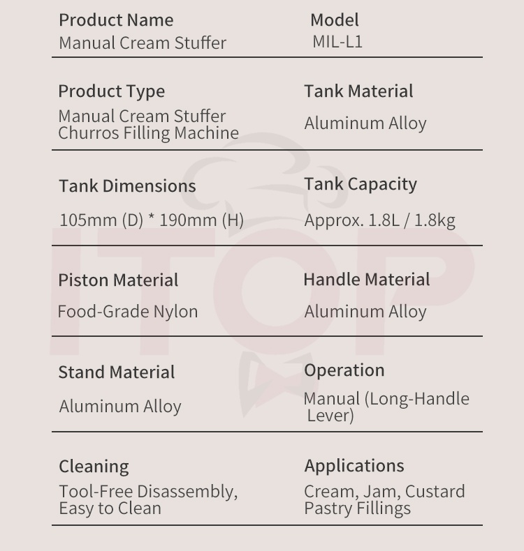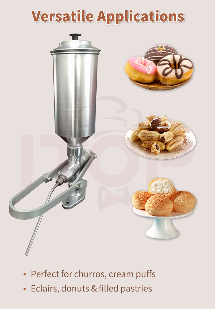 1. The commercial use of manual 1.8L aluminum alloy churro filler machine.