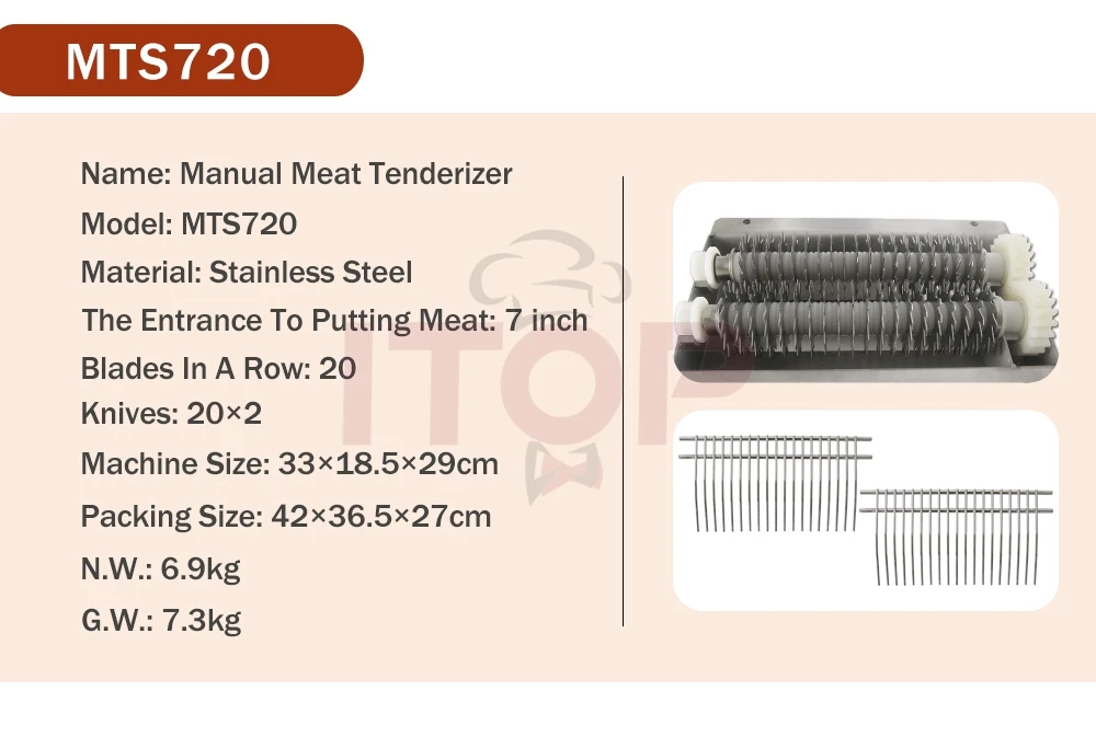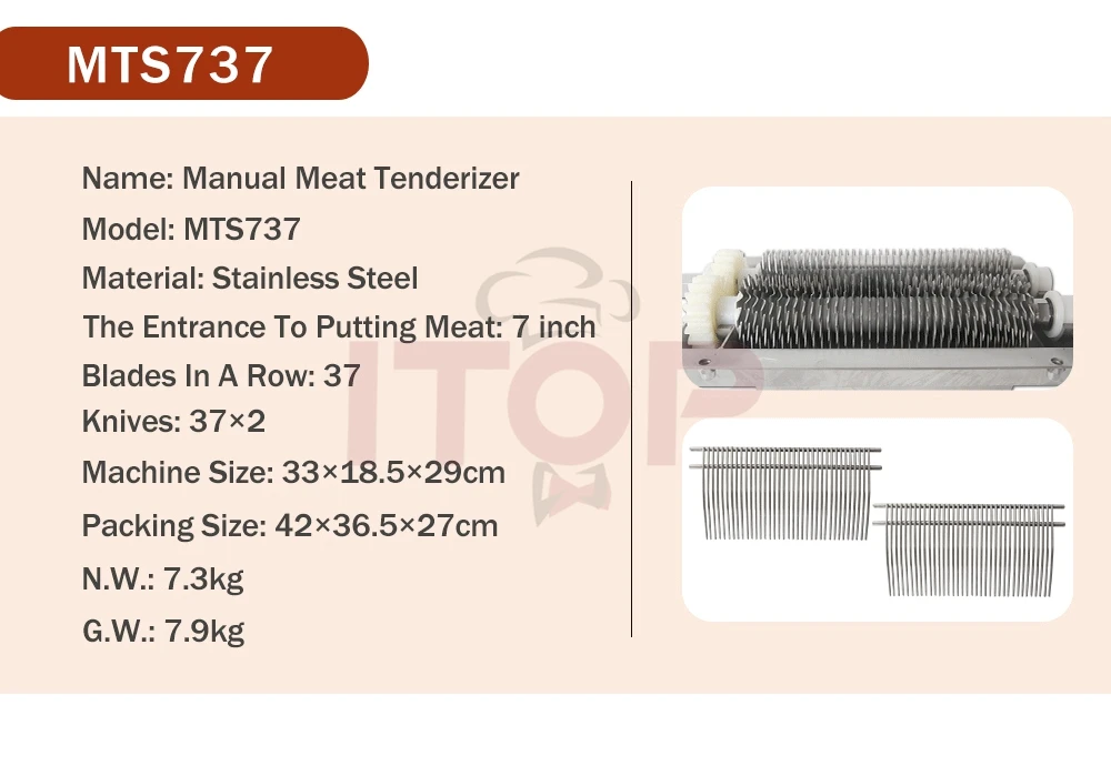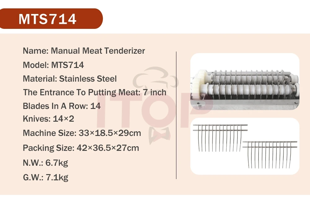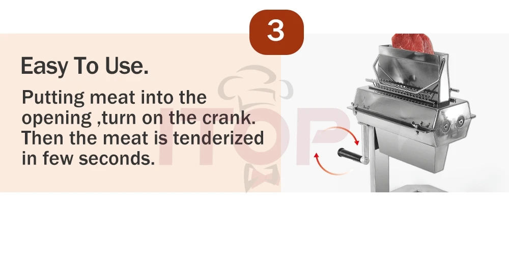 1) Tenderizes steaks up to 7" wide and 1" thick