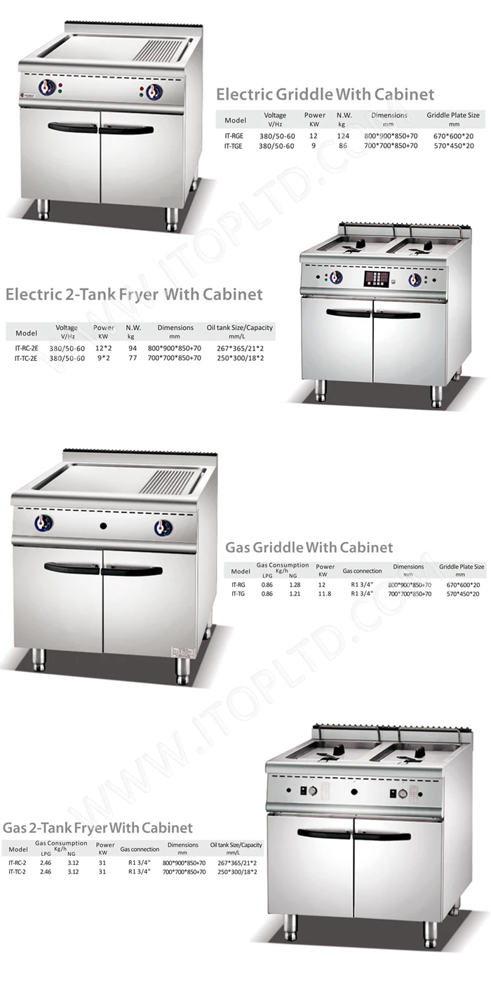 Commercial Freestanding Grill Griddle BBQ Stainless Steel Flat Grooved Top Barbecue Electric Griddle With Cabinet