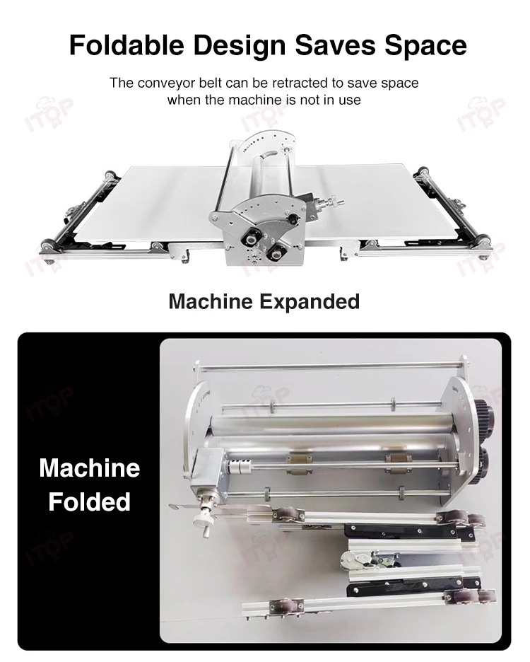 1.Electric dough sheeter is foldable storage, saving baking space. Easy for home bakers, dining-hall, coffee shop use.