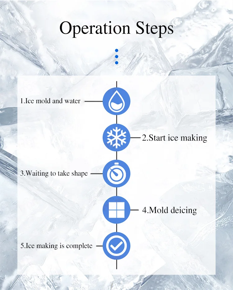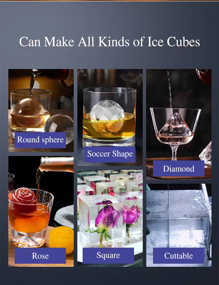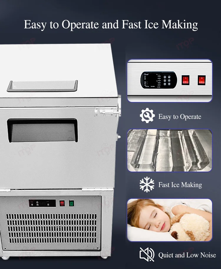 2 pieces at a time, flexible operation, about 10 hours ice size 390*330*65mm, about 24 hours ice size 390*330*120mm, about 48