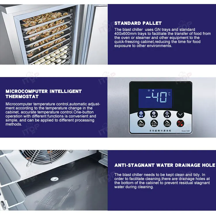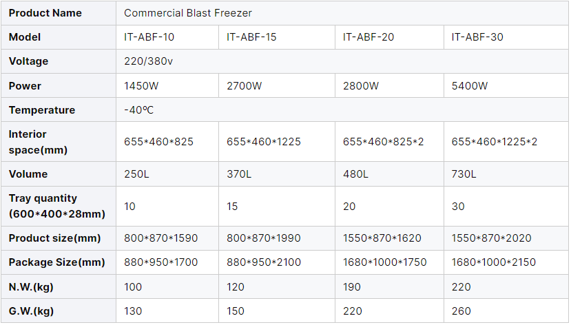 240 mins blast freezing (food core temperature from 90℃ to -18℃)
