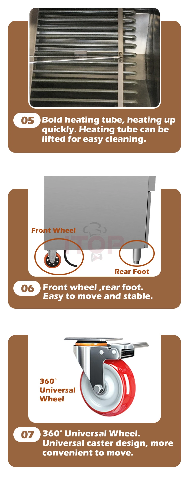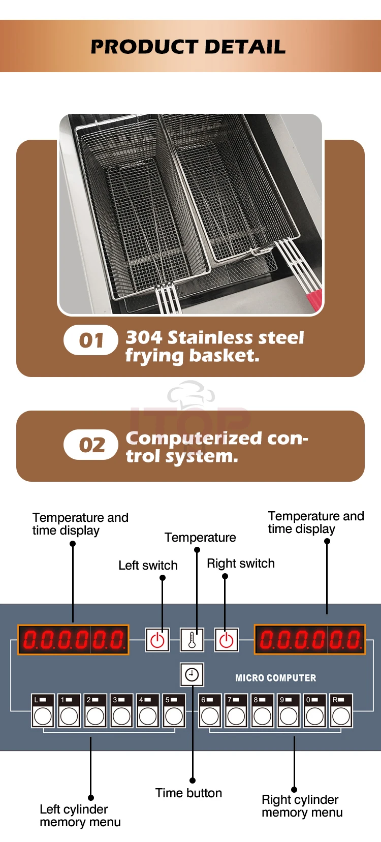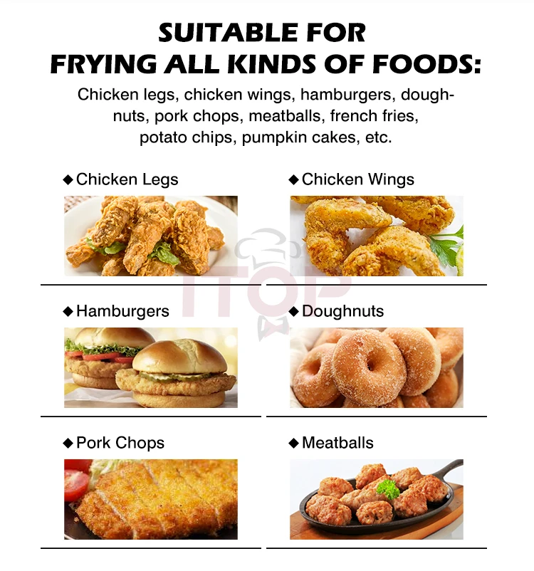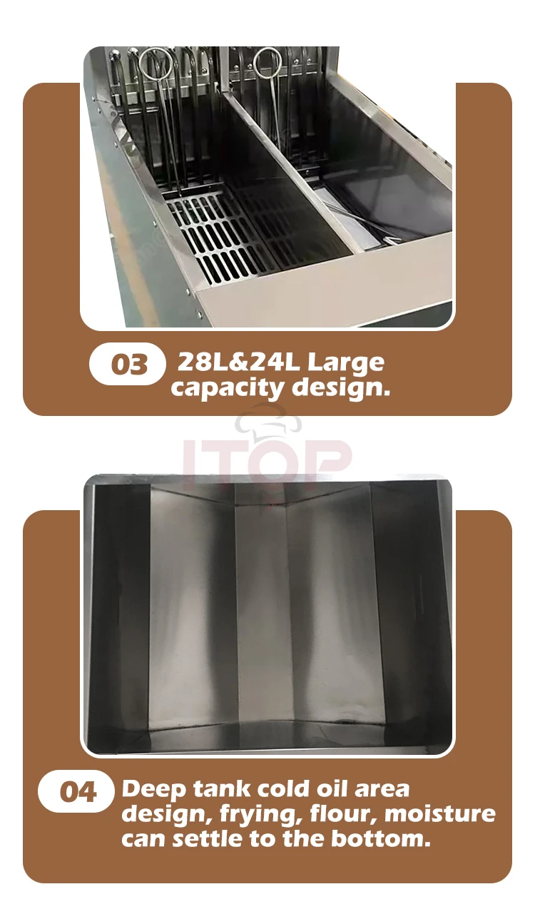 6. Deep tank cold oil area design, frying, flour, moisture can settle to the bottom.