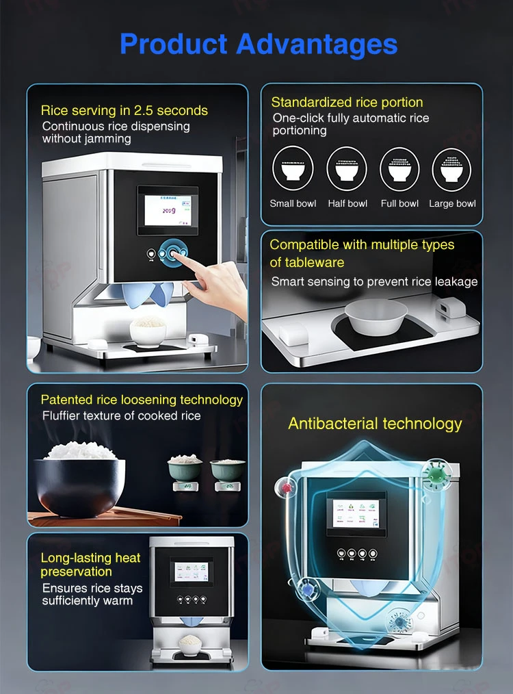 1.Rice serving in 2.5 seconds,Continuous rice dispensing without jamming.