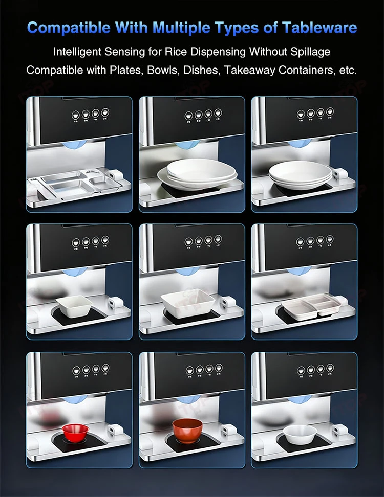4.Compatible with Multiple Types of Tableware,Intelligent Sensing for Rice Dispensing Without Spillage.