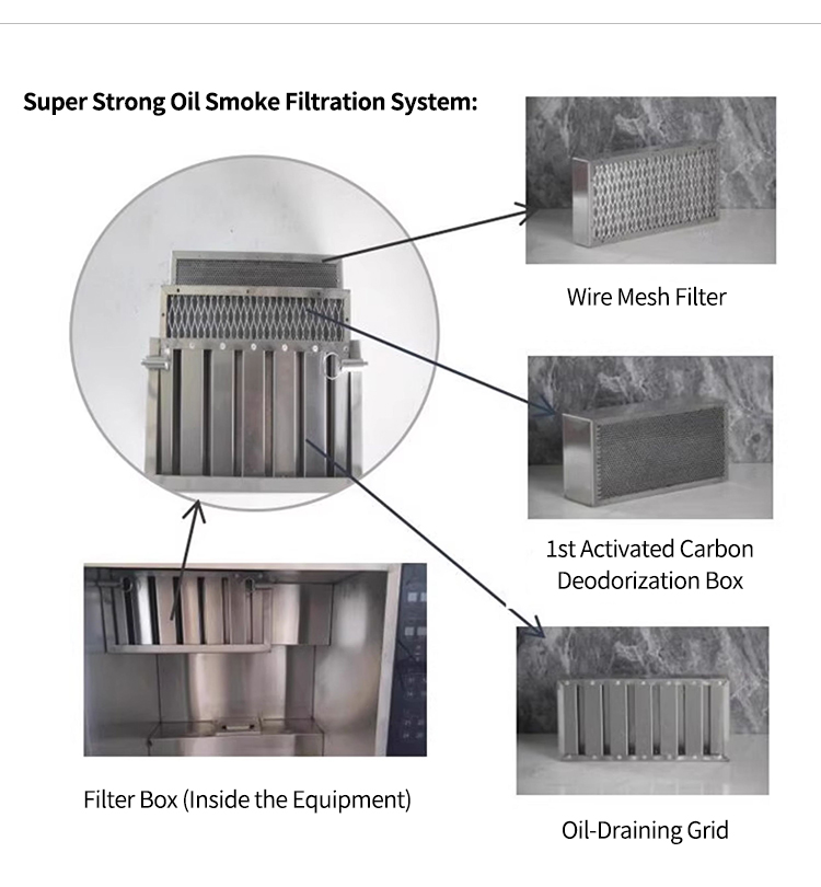 8.Clean frying with no external oil fume discharge simplifies site selection for frying areas.