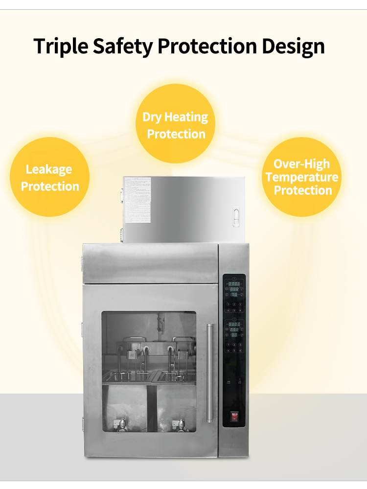 10.Independent control system for each frying basket provides dual safety for operation.